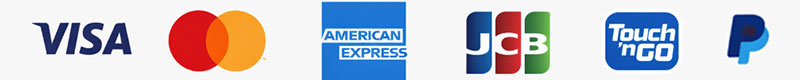 Payments by PayPal and credit/debit cards are accepted (Carte Bleue, Visa, Mastercard, American Express, Maestro, Touch ’n Go).